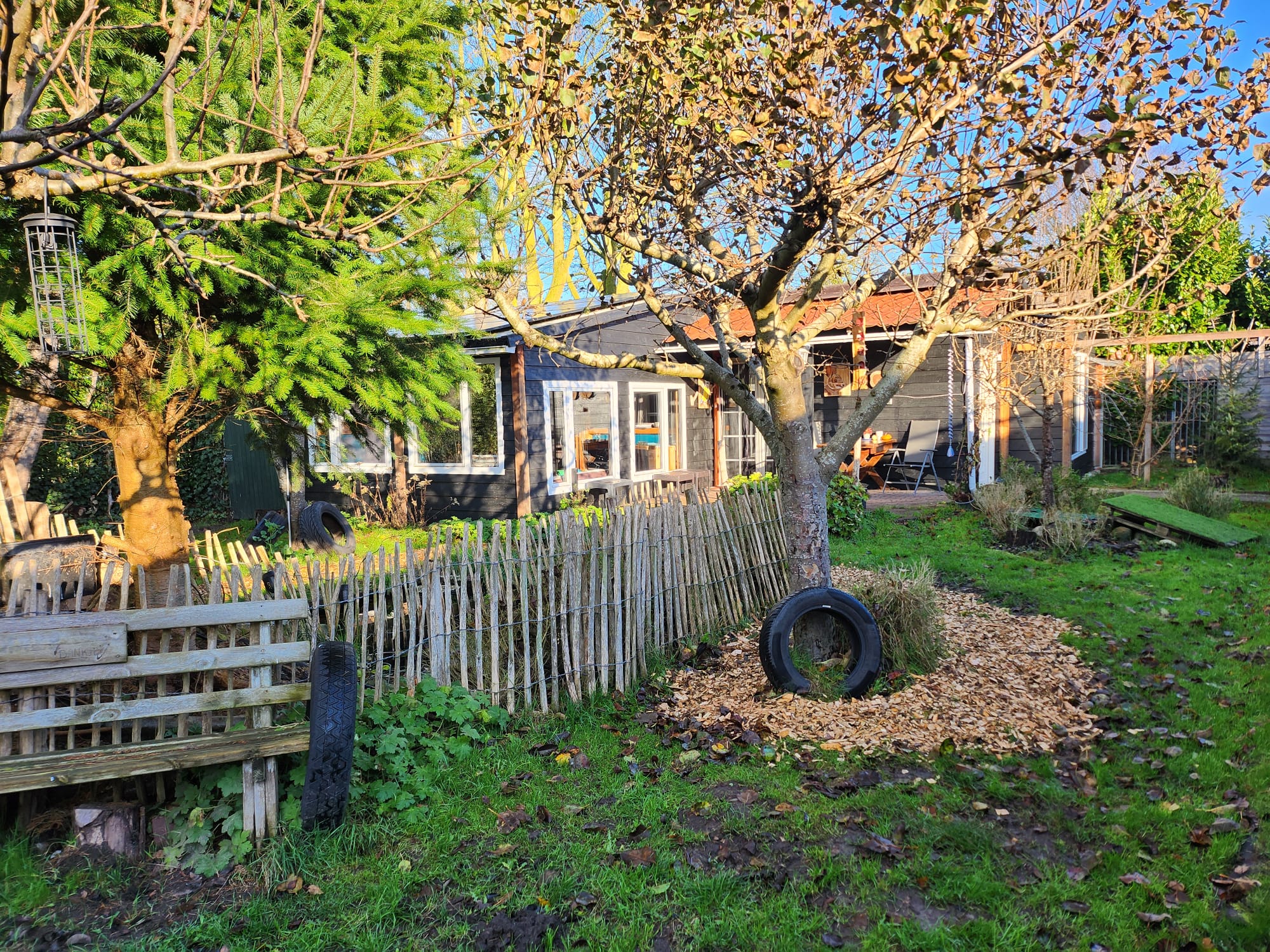 Impressie van het terrein van De Bonte Hond, gezien vanuit de woonkamer.