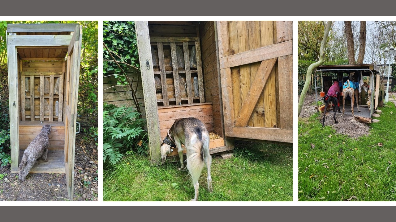De omheining is overal minimaal 215 centimeter hoog, of hoger en langs de schutting en de kenneldelen ligt 70 cm gaas in de bodem en/of een brede rij zware betontegels en boomstammen. Veilig voor alle honden maar vooral ook voor een veilige windhonden vakantie.
