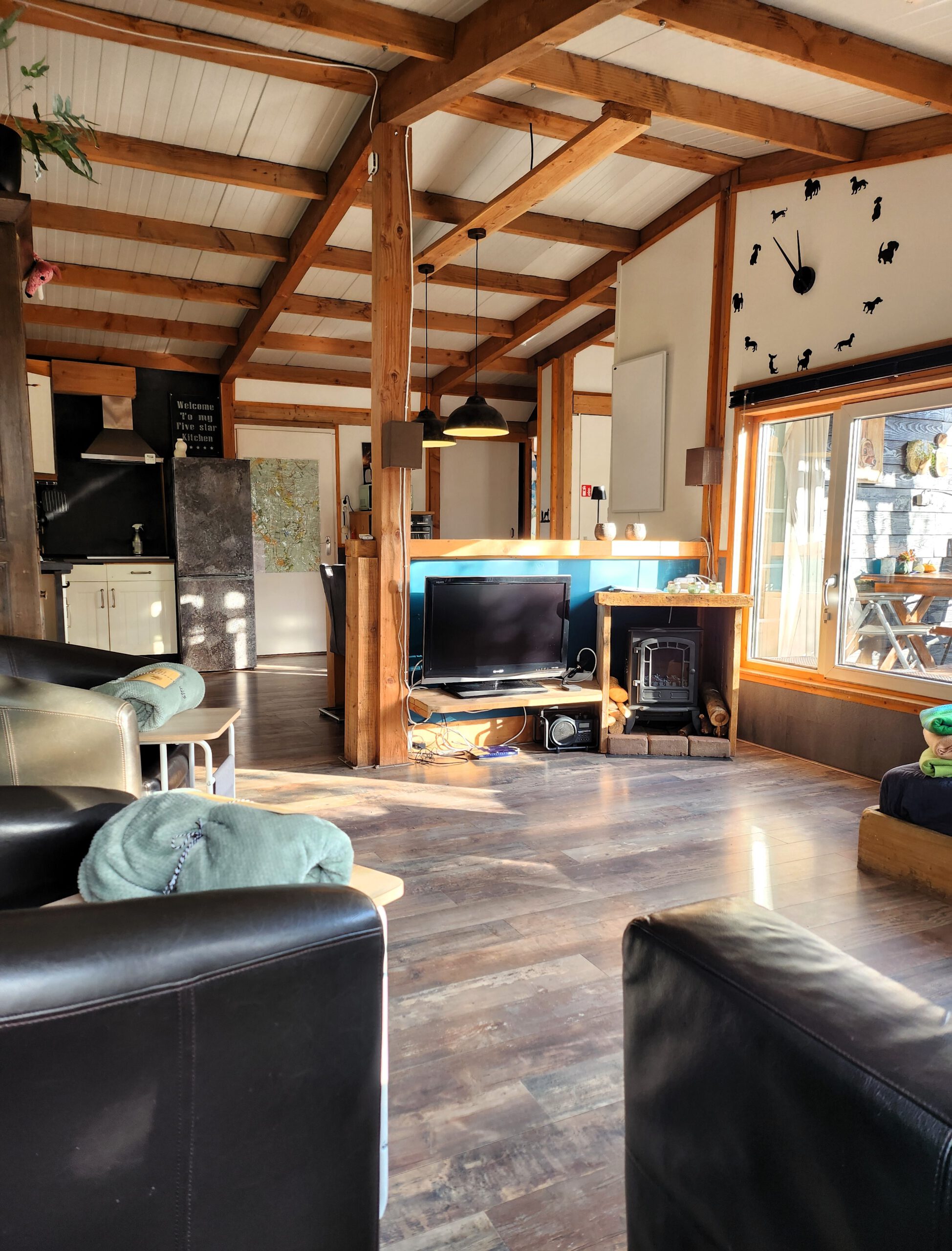 De woonkamer in De Bonte Hond is een sfeervolle en praktische relaxplek. Nieuwsgierig hoe het er verder binnen uitziet? Klik hier. Voor de foto’s van het interieur moet je op die betreffende pagina even door scrollen naar beneden omdat je eerst alle info en foto’s vindt voor de honden.