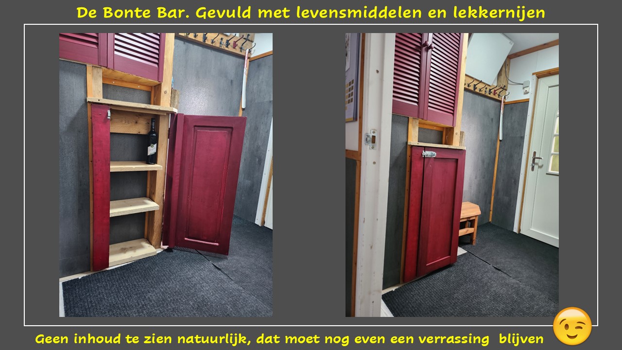 - De Bonte Broodmand in de schutting gebouwd, waarin uiterlijk 08.00 uur en in het weekend om 08.30 uur, verse broodjes en of croissants kunnen worden afgeleverd. In De Bonte Broodmand vind je ook De Bonte Hond Hap wanneer je die hebt gereserveerd.